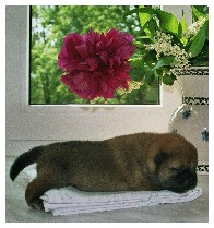 Mit frisch eingekürzten Krällchen, um die Mutterhündin nicht etwa zu verletzen, startete AETENOKI in seine 2. Lebenswoche. Ein beständiges Saug- und Schmatzgeräusch führte dazu, daß er Problemzönchen entwickelt hat. Wenn ihm auch niemand die gute Milch streitig macht! Am spannendsten war der 12. Tag. Erstmals hatte er seine Äuglein geöffnet.
