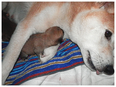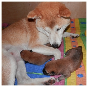 Zwei Welpchen sind am 21. Juli 2014 von meiner Zuchthündin Bummi geworfen worden. Wieder hat sie mir durch ihr Verhalten deutlich angezeigt, daß es bald losgeht. Nach einer Stunde Preßwehen kam nachmittags kurz vor 3 die kleine Hündin, eine knappe Stunde später der Rüde. Beide Welpen sind rot - und was noch wichtiger ist, gesund und munter. Die Geburtsgewichte lagen mit 277g und 279g wieder dicht beieinander. Fürsorglich kümmert sich meine Bummi und ich bin dankbar und froh, daß wieder alles ohne Schwierigkeiten abgelaufen ist.