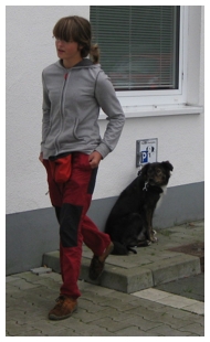 Amon wartet geduldig, Frauchen ist außer Sicht.