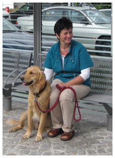 Fanny mit Hugo, der "andere Parkbesucher" nicht belästigt.