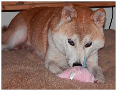 Bummi hat ein Plüschi ergattert und in Sicherheit gebracht