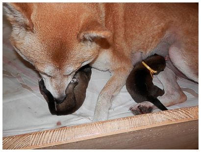 Die beiden kleinen Rüden sind am 9.6. 2018 nach 61 Tagen Tragezeit wohlbehalten auf die Welt gekommen. Im Abstand von 25 Minuten waren abends beide da. Die Gewichte liegen mit 312 g und 316 g dicht beieinander und beide nehmen weiter tüchtig zu. Das Auseinanderhalten der Zwerge hat mir Mama Paia nicht leichtgemacht, das gutgemeinte Kennzeichnungsbändchen fand sie doof und hat es wieder abgeknibbelt. Doch der Erstgeborene hat eine markante weiße Zeichnung auf der Brust, sein Bruder ist dafür etwas schwerer und wirkt insgesamt ein wenig mehr rot.